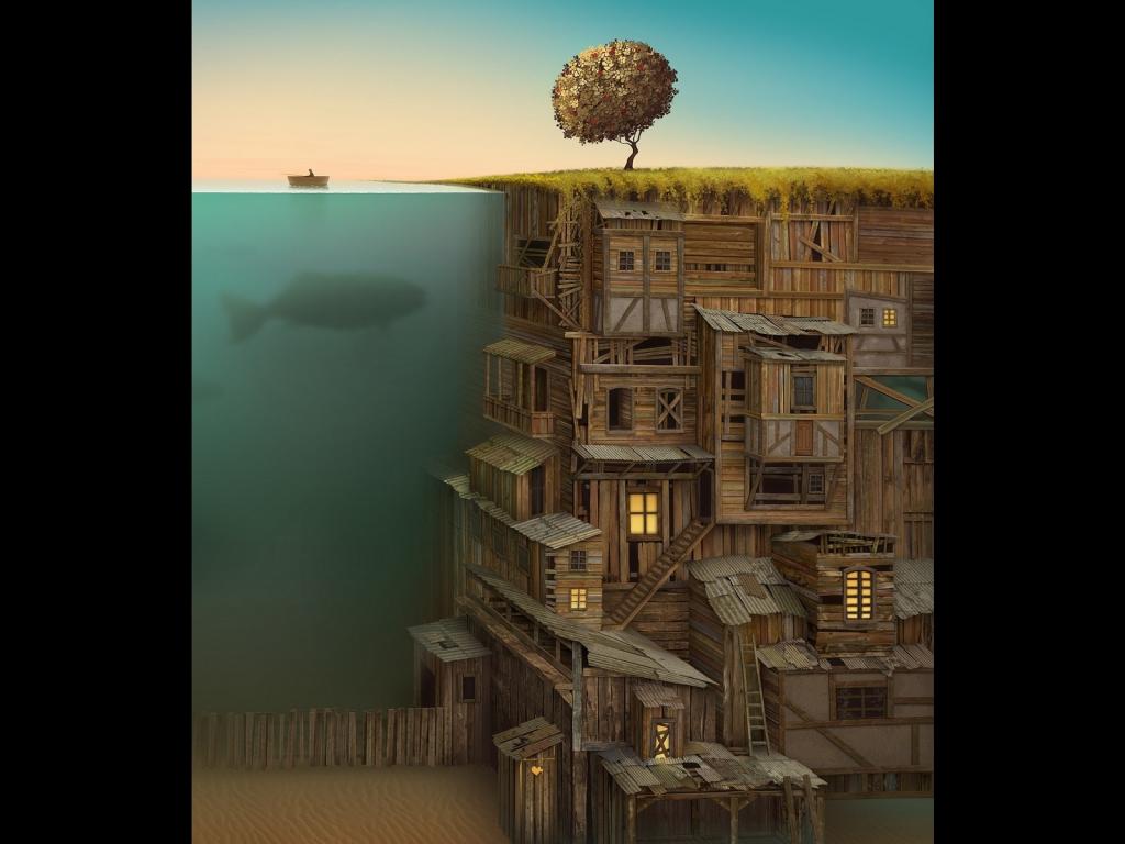 Дом, море, рыба, рыбак, дерево, берег, глубина, высота обои для рабочего стола, картинки, фото, 1024x768. | ||||||||||||||||||||||