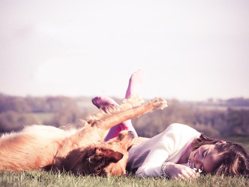 Девушка и собака валяются на траве обои для рабочего стола, картинки, фото, 1024x768. | ||||||||||||||||||||||