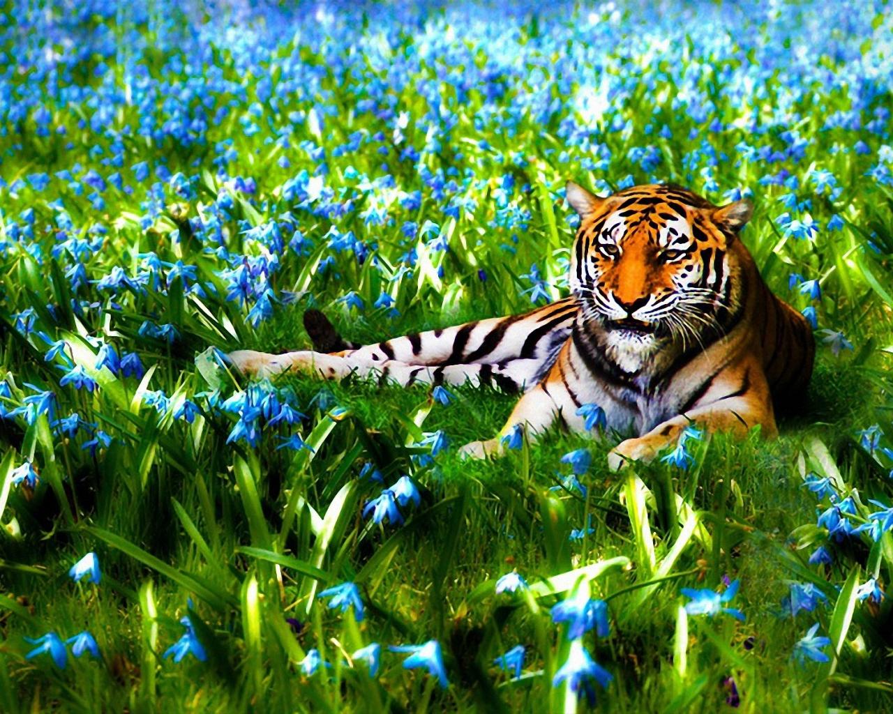 Тигр, цветущая, поляна обои для рабочего стола, картинки, фото, 1280x1024. | ||||||||||||||||||||||