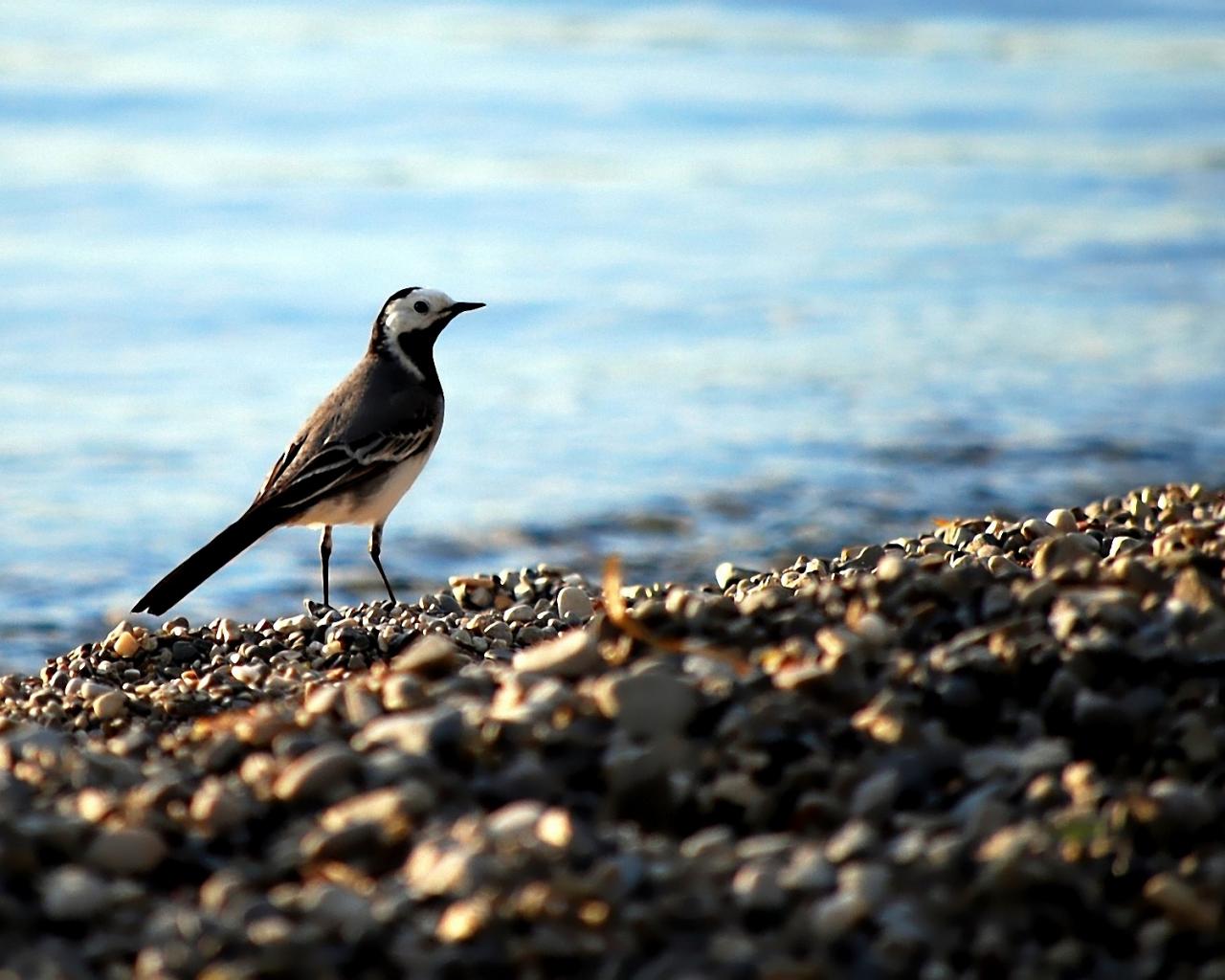Трясогузка, галька, вода обои для рабочего стола, картинки, фото, 1280x1024. | ||||||||||||||||