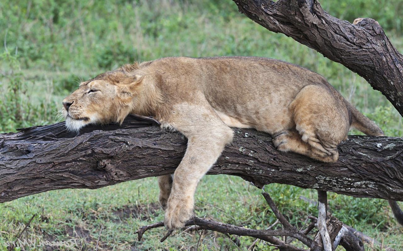 Лев, сон, дерево обои для рабочего стола, картинки, фото, 1280x800. | ||||||||||||||||