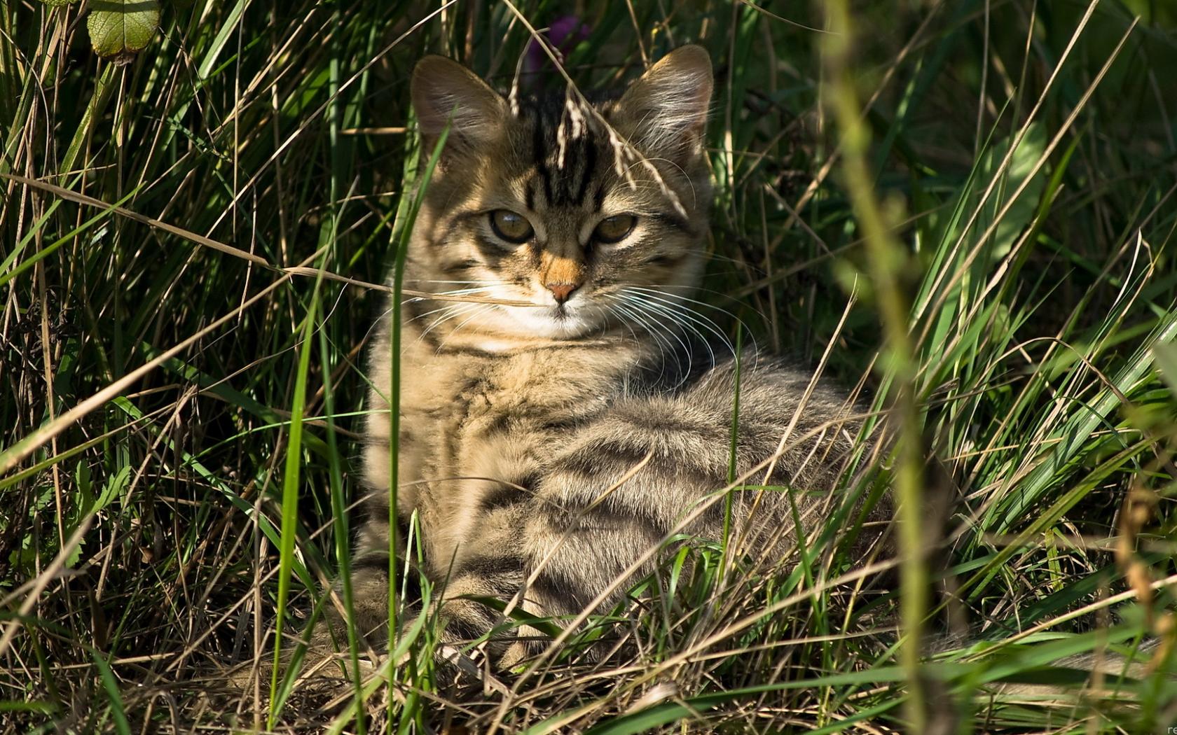 Котенок, трава, отдыхает, полосатый обои для рабочего стола, картинки, фото, 1680x1050. | ||||||||||||||||