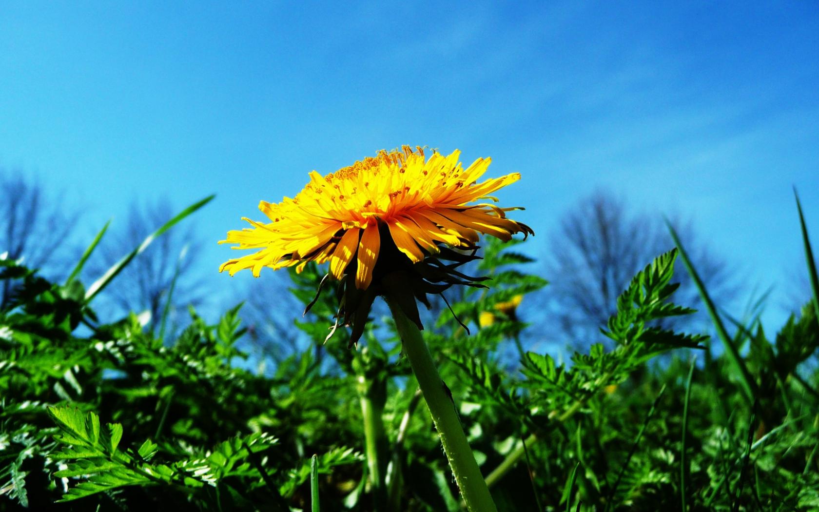 Яркий желтый одуванчик в поле, крупным планом обои для рабочего стола, картинки, фото, 1680x1050. | ||||||||||||||||||||||