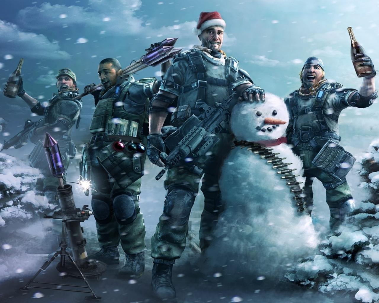 Новый год в шутере обои для рабочего стола, картинки, фото, 1280x1024. | ||||||||||||||||