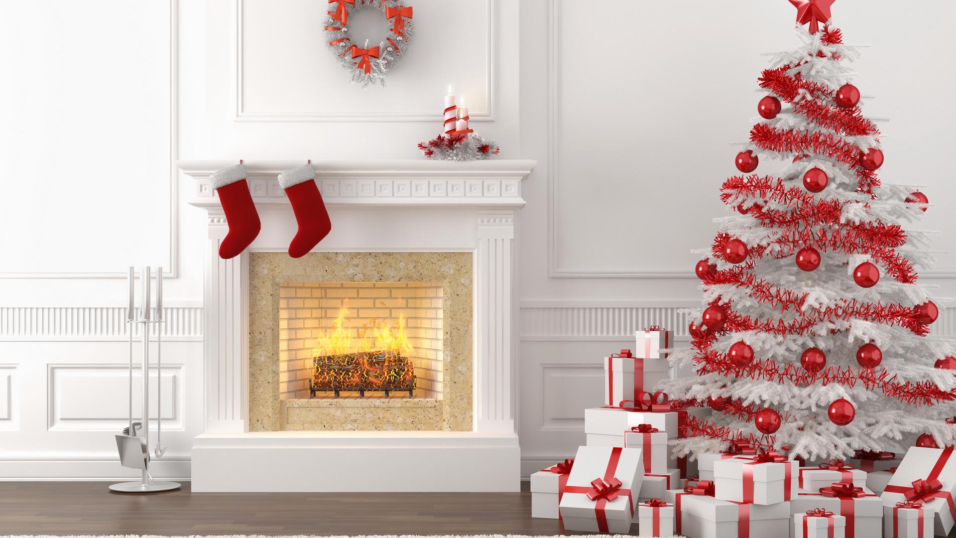 Ёлка возле камина обои для рабочего стола, картинки, фото, 1920x1080. | ||||||||||||||||