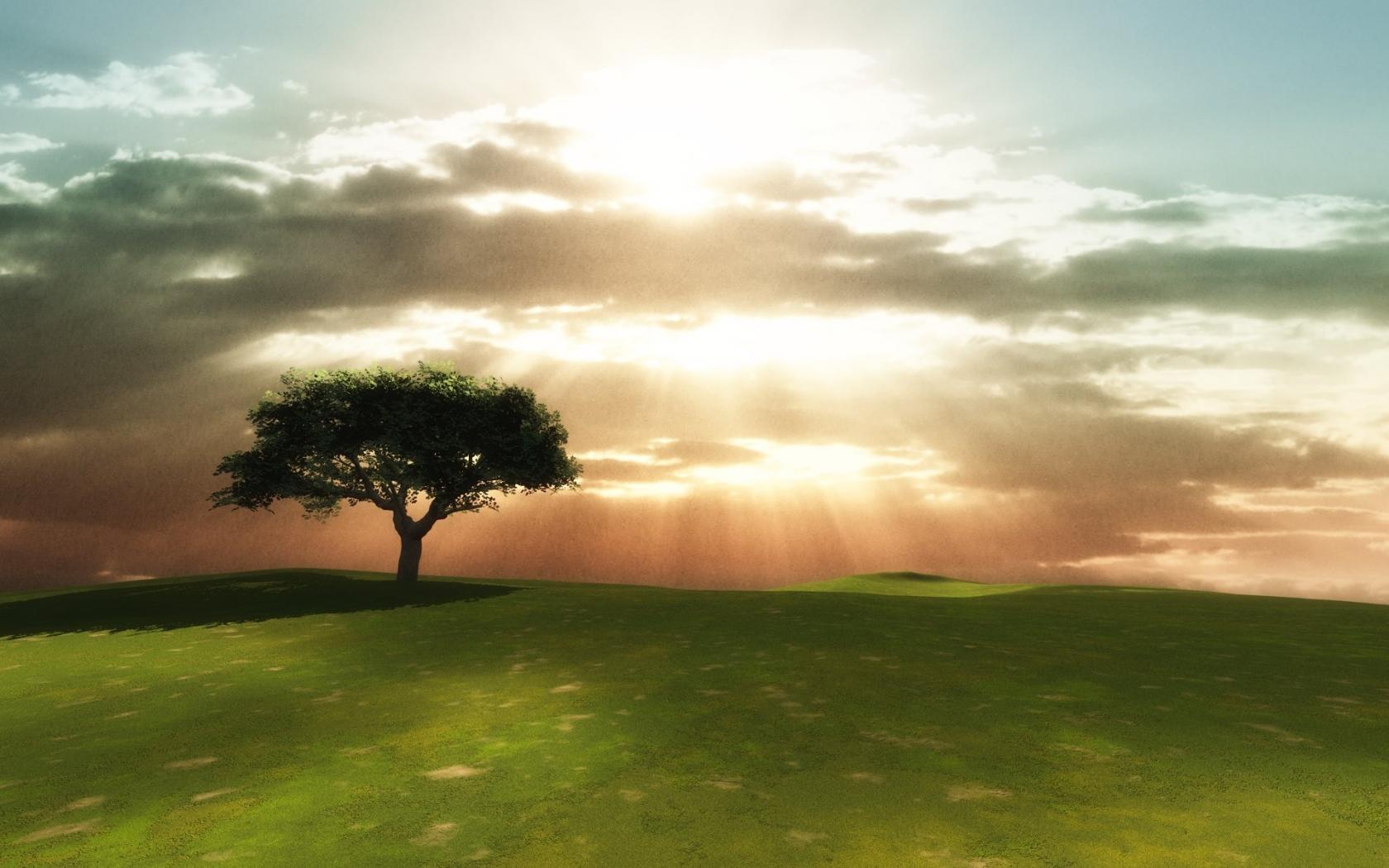 Поле, дерево, лучи света обои для рабочего стола, картинки, фото, 1680x1050. | ||||||||||||||||