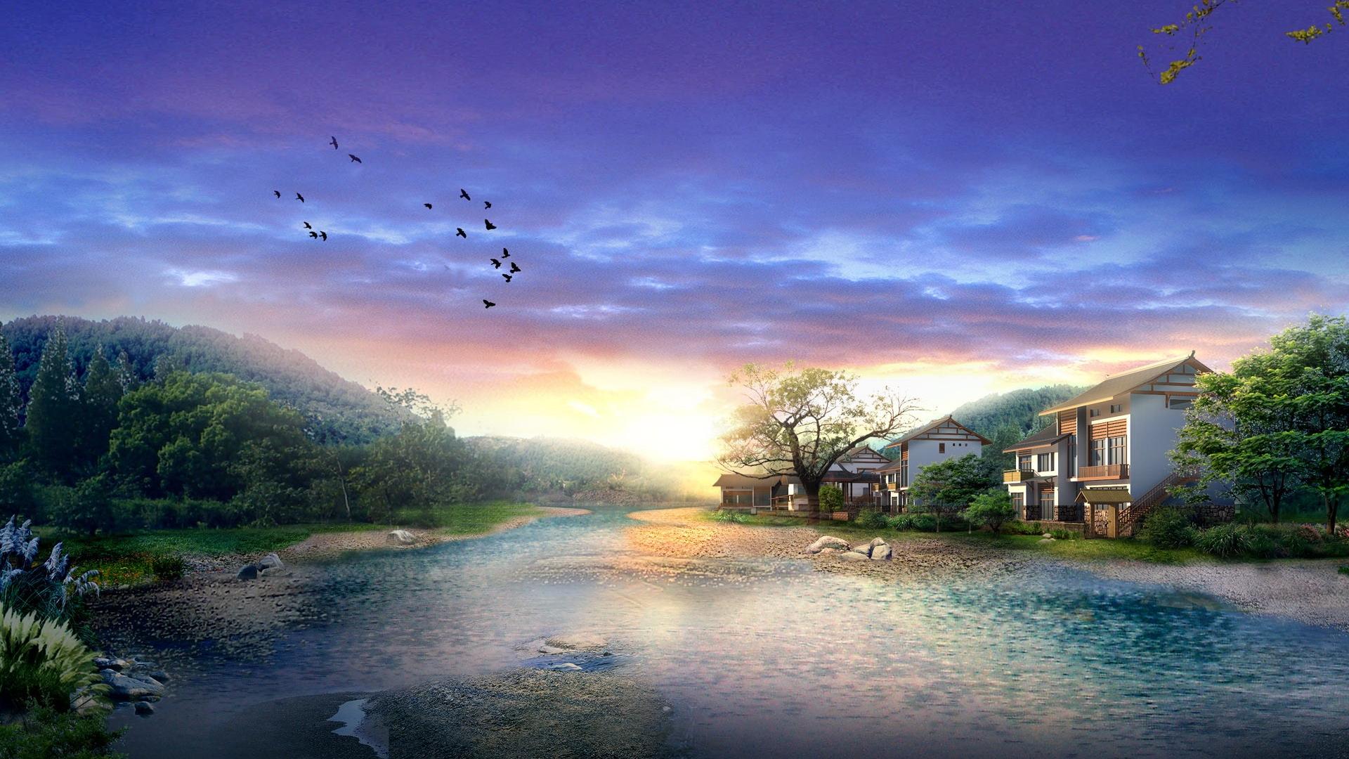 Птицы, река, дом обои для рабочего стола, картинки, фото, 1920x1080. | ||||||||||||||||