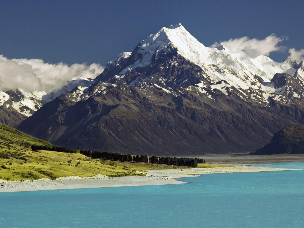 Святая гора, вода, деревья, облака обои для рабочего стола, картинки, фото, 1024x768. | ||||||||||||||||
