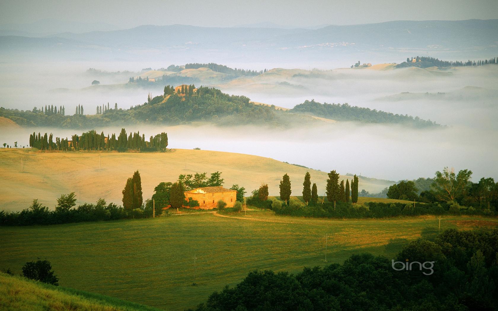 Поля, италия, туман обои для рабочего стола, картинки, фото, 1680x1050. | ||||||||||||||||