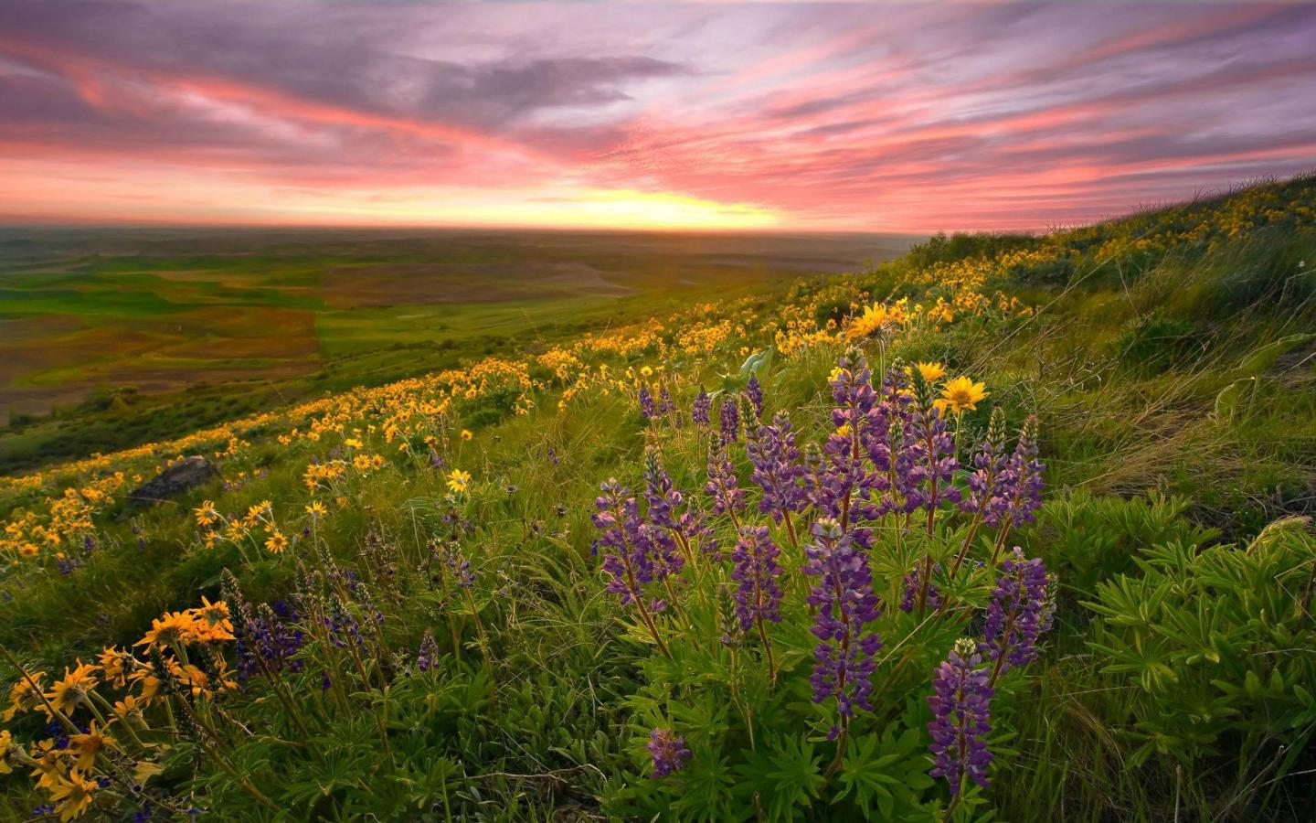 Невероятный закат и цветы.Скачать обои для рабочего стола, картинки, фото, 1440x900. | ||||||||||||||||||||||